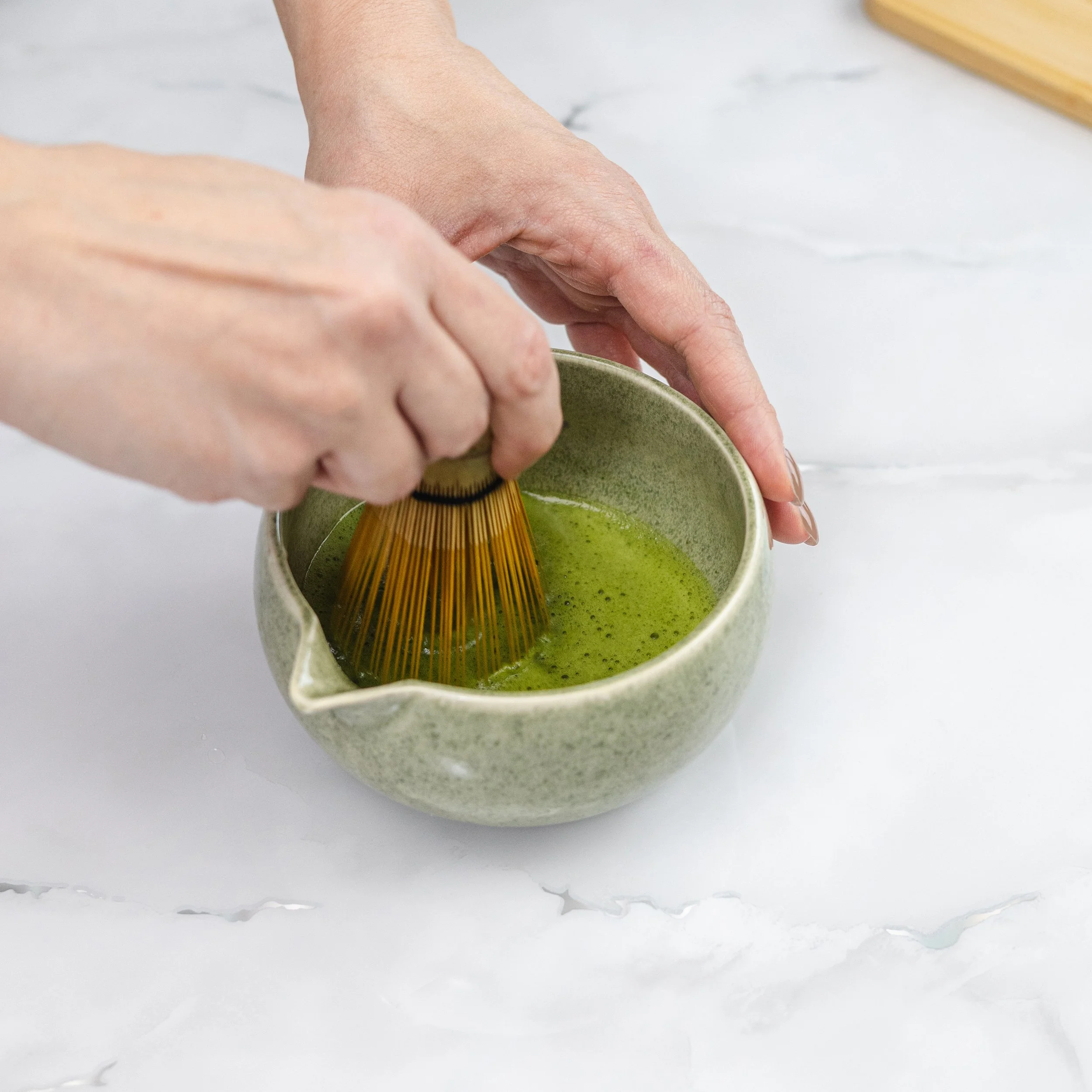 TIP: The temperature of the warm water used for blooming the matcha whisk should be ~140–158°F (or 60–70°C).